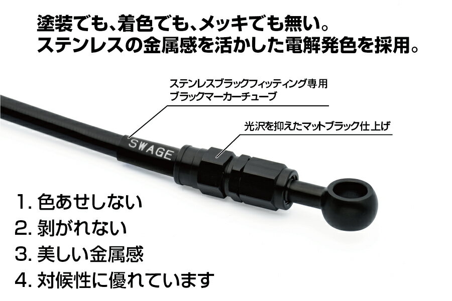 3. 美しい金属感機械加工されたステンレスフィッティングに電解発色処理を施す事で、渋みのあるマットブラック仕上げが実現します。